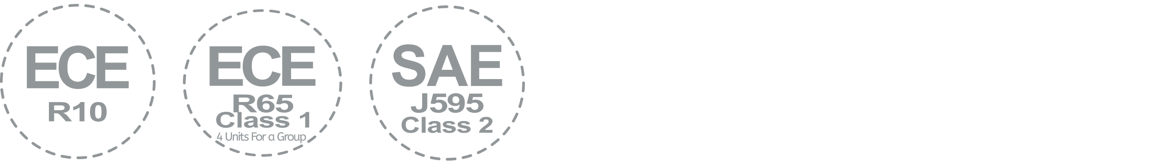 | Certifications | ECE R10, ECE R65 Class 1 (4 units for a group), SAE J595 Class 2 |